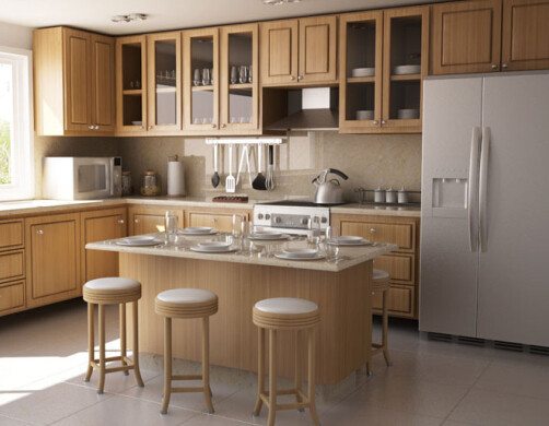 廚房里有很多小家電,燒水壺、微波爐、料理機、蒸箱、烤箱……對于形狀規(guī)整的那些小家電,最好是在設計櫥柜的時候就考慮到,做成嵌入櫥柜里,或者用墻上的架子固定,不要一大堆攤在臺面上,不但看著亂,而且占用很多臺面面積。